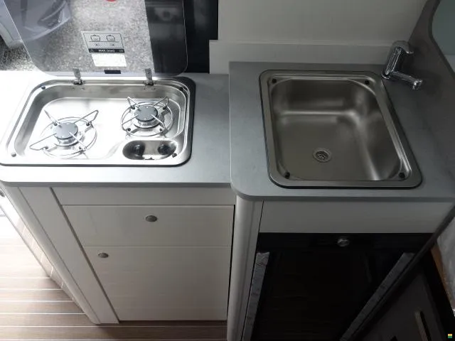 2 Flammen Kocher / Spülbecken / Kühlschrank mit Frostfach